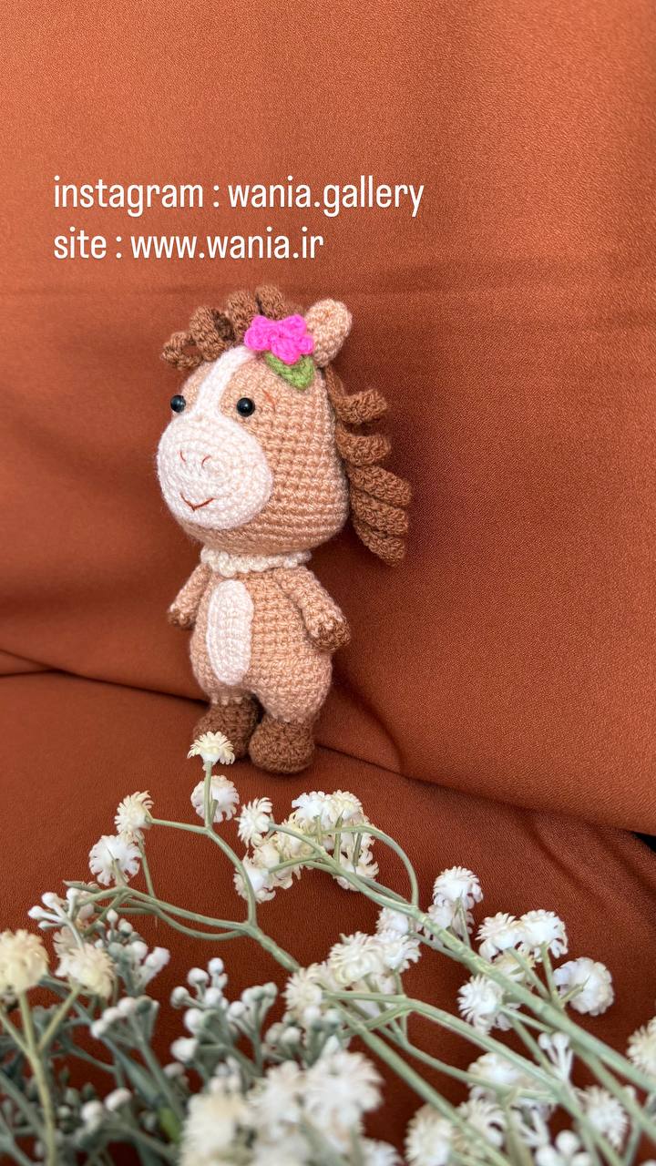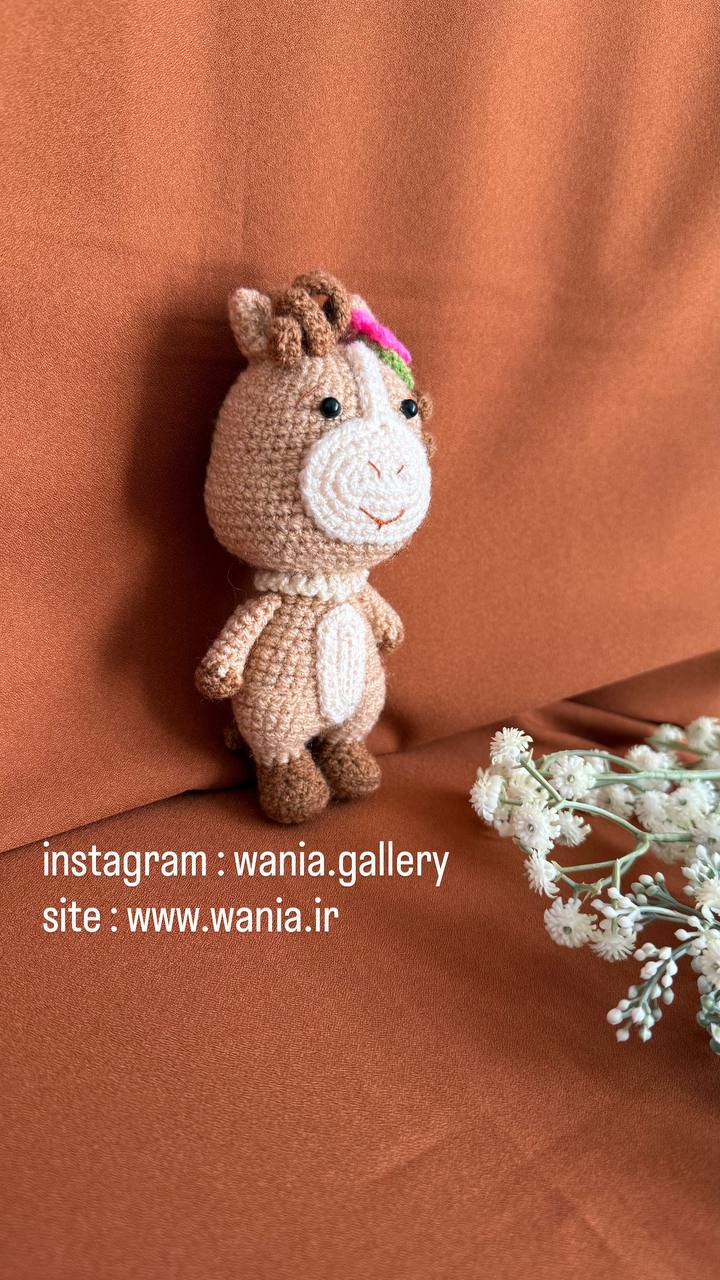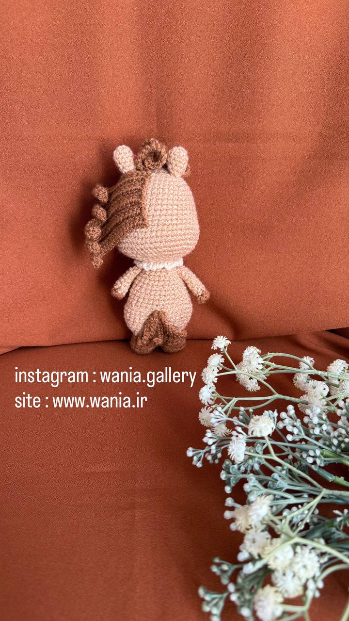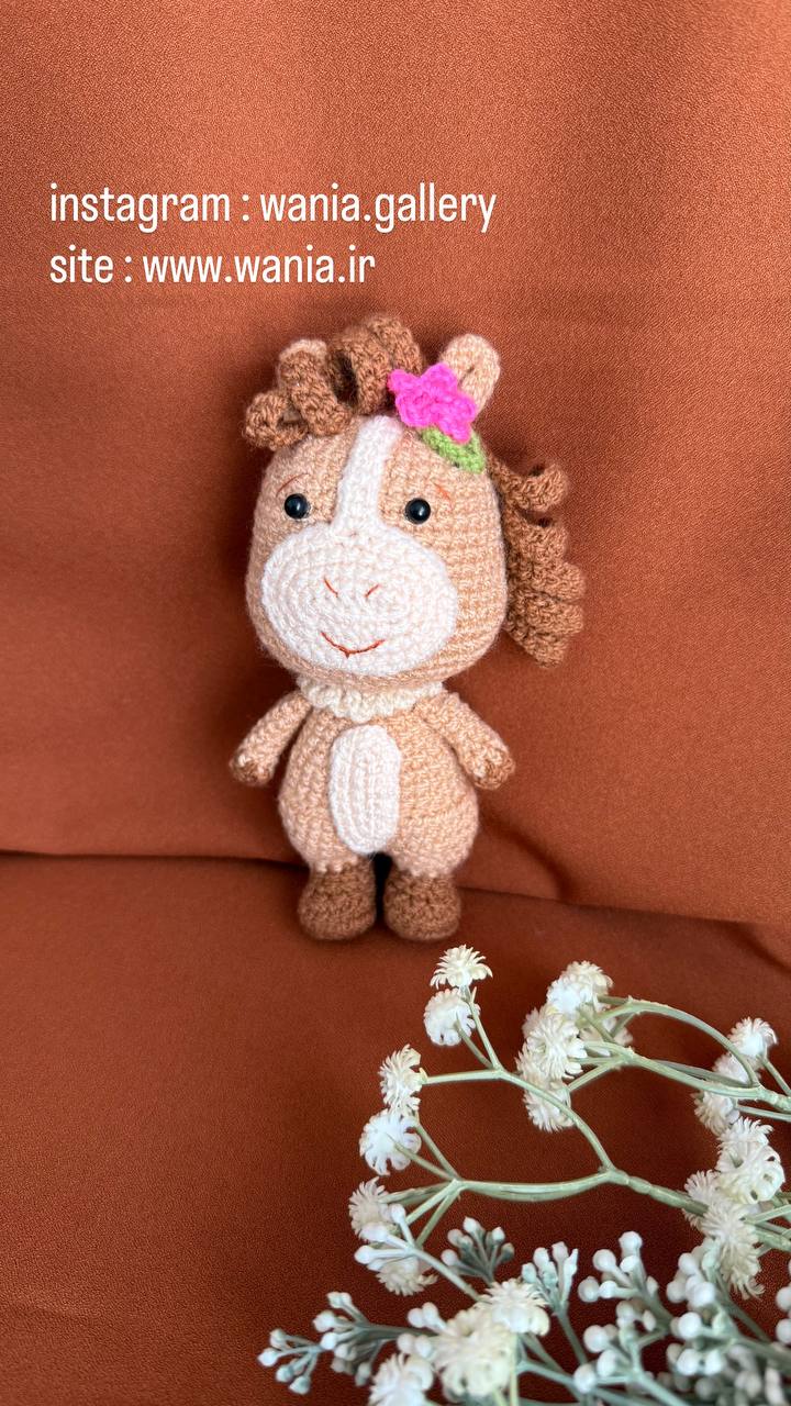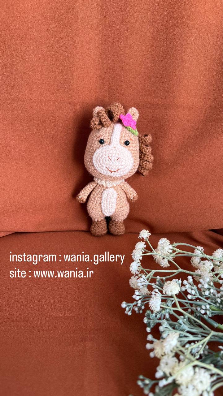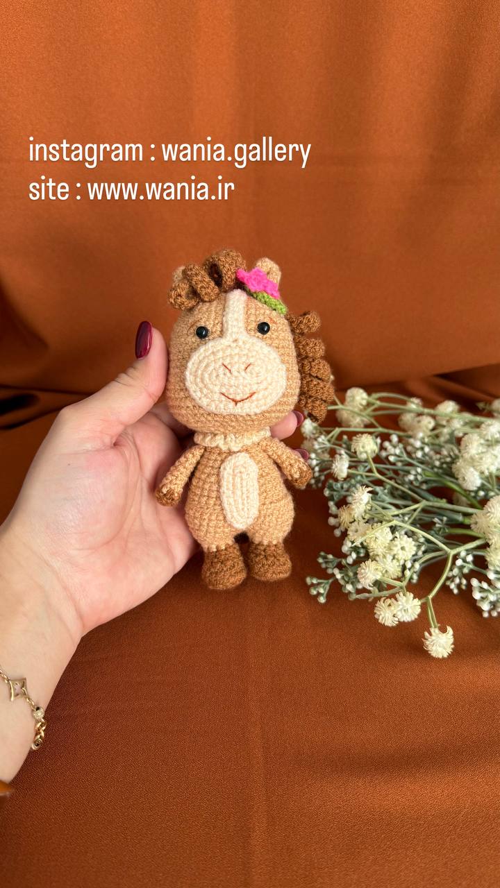 عروسک خانوم اسبه یک عروسک فانتزی از جنس کاموا می باشدکه با دست بافته شده است و دارای ریزه کاری های فانتزی می باشد .