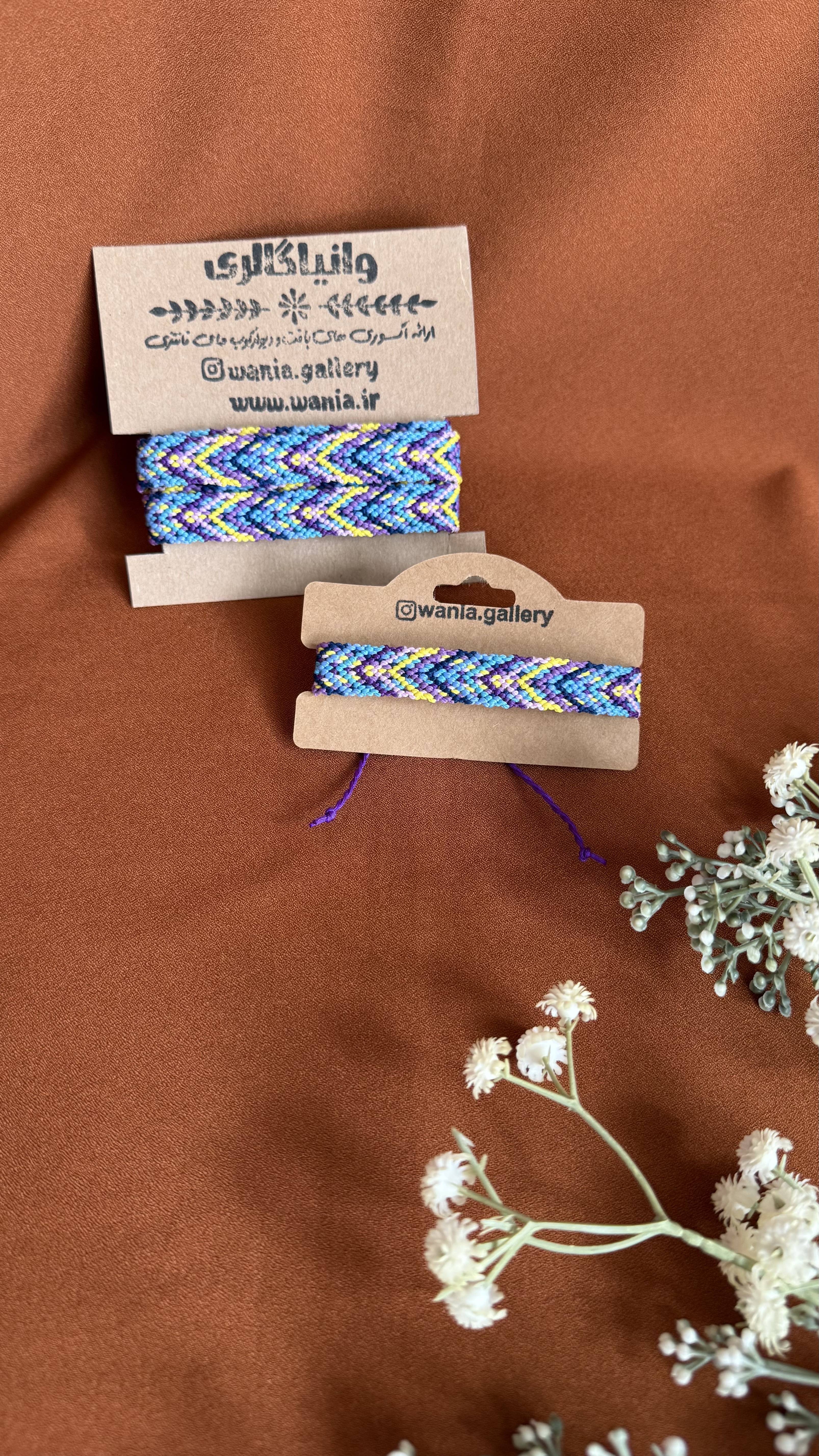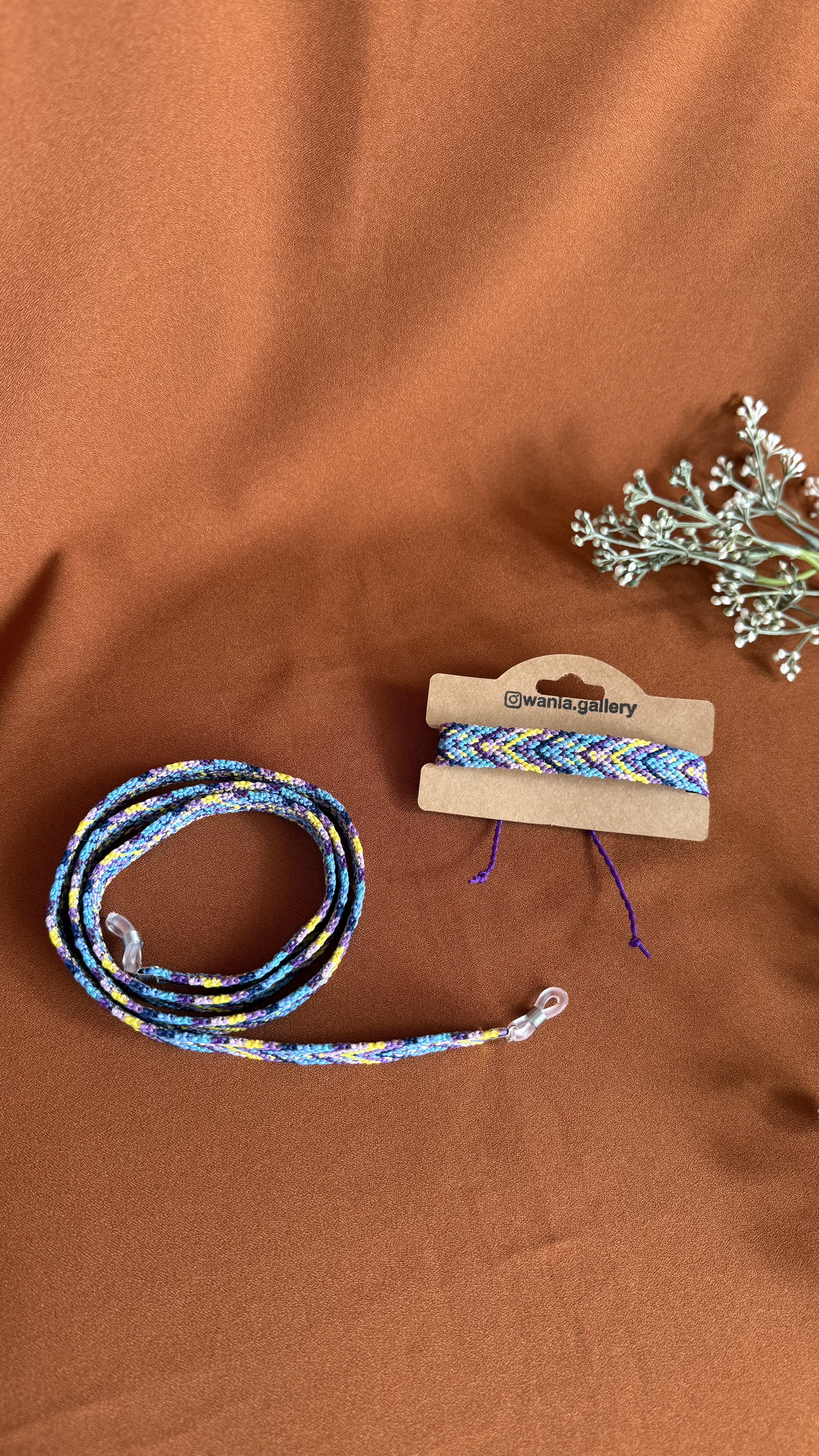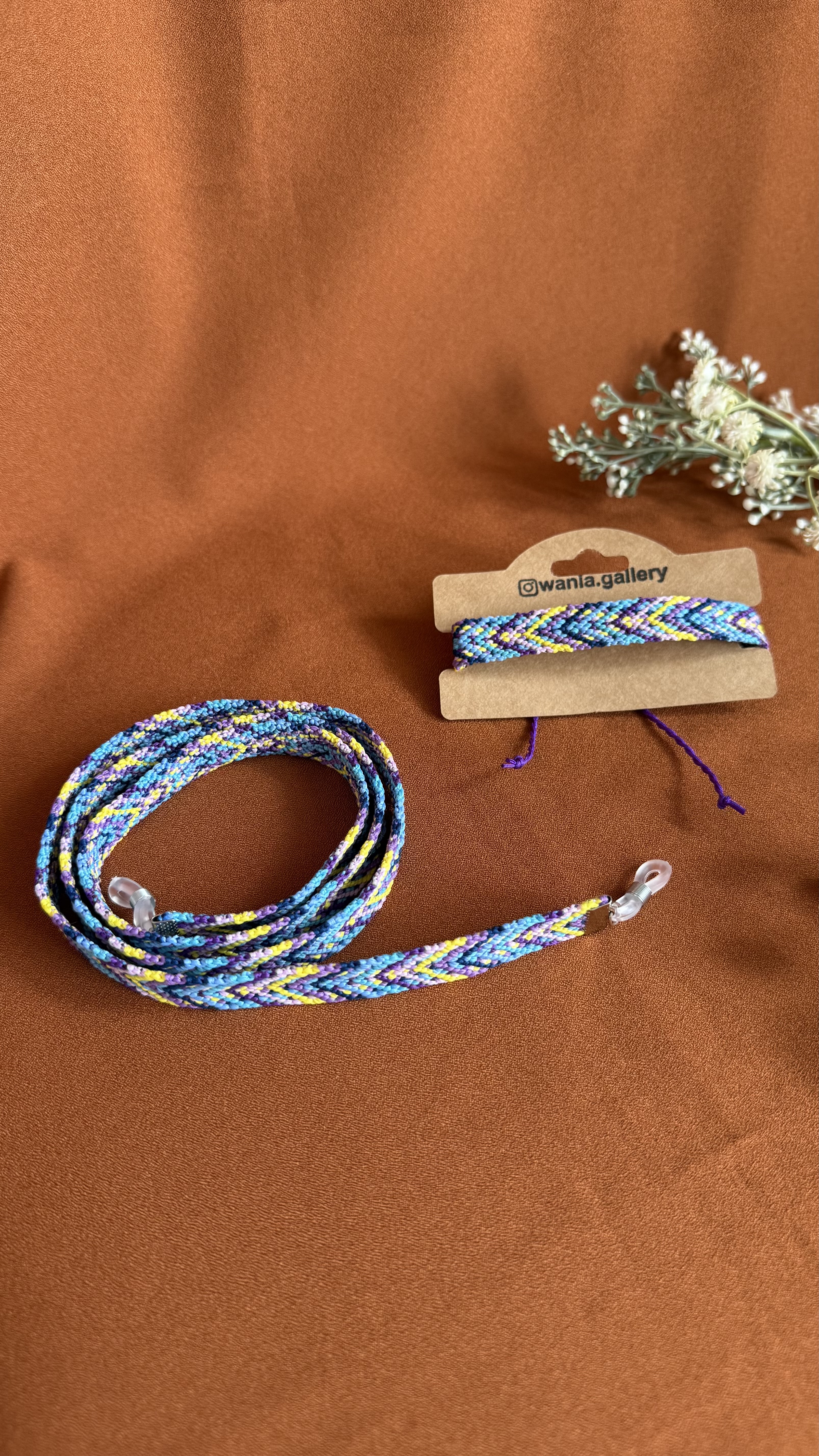 ست هدیه بندعینک و دستبند دستبافت طرح موج یکی از جدیدترین کارهای تیم وانیا می باشد که با صرف وقت زیاد و همچنین با حساسیت زیاد در مورد انتخاب رنگ نخ ها بافته شده است .